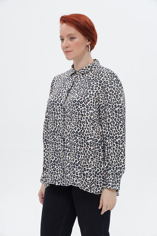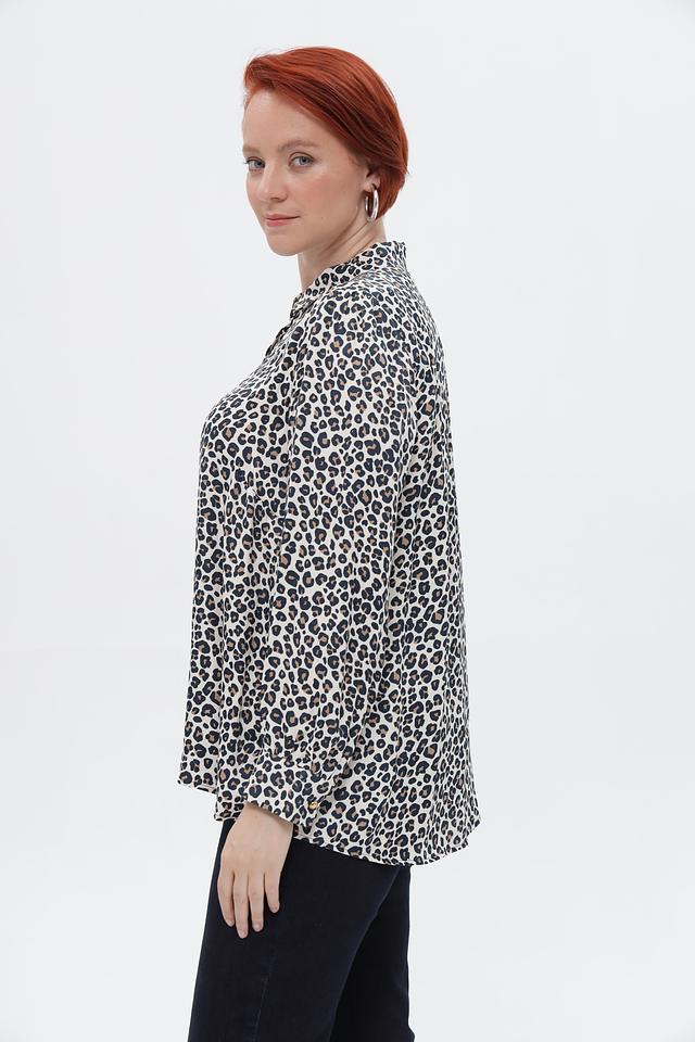 Блуза Frapp бежевого цвета с ярким леопардовым принтом станет стильным дополнением к вашему гардеробу. Модель выполнена из мягкой вискозы, обеспечивающей комфорт в носке, и имеет длинные рукава. Состав: вискоза 100%