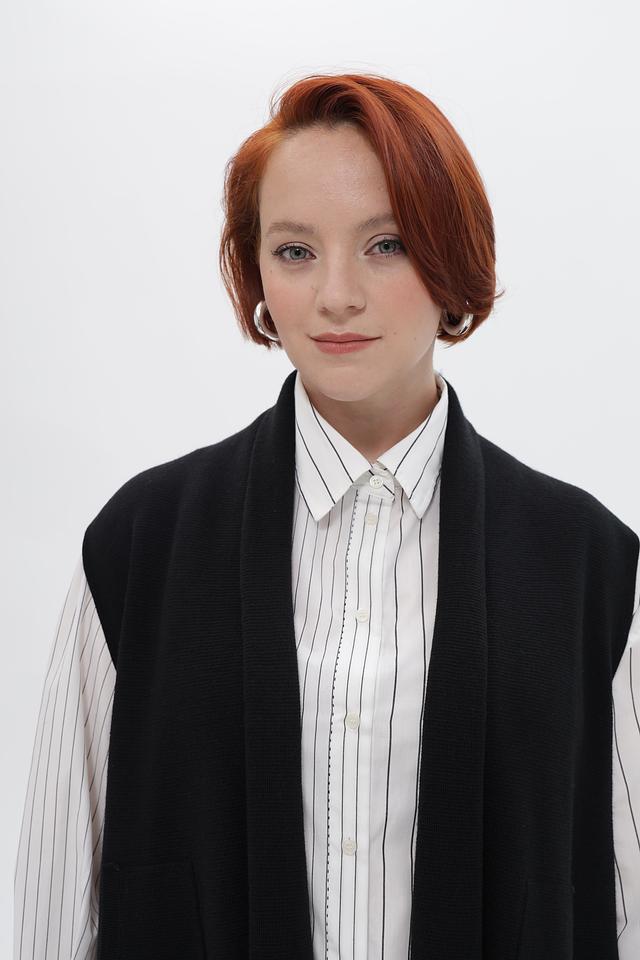 Жилет имеет удлиненный крой, который визуально вытягивает силуэт и делает образ более элегантным. Свободный крой обеспечивает комфорт и свободу движений. Открытые полочки позволяют создавать многослойные образы, комбинируя жилет с различными блузками, рубашками и топами.