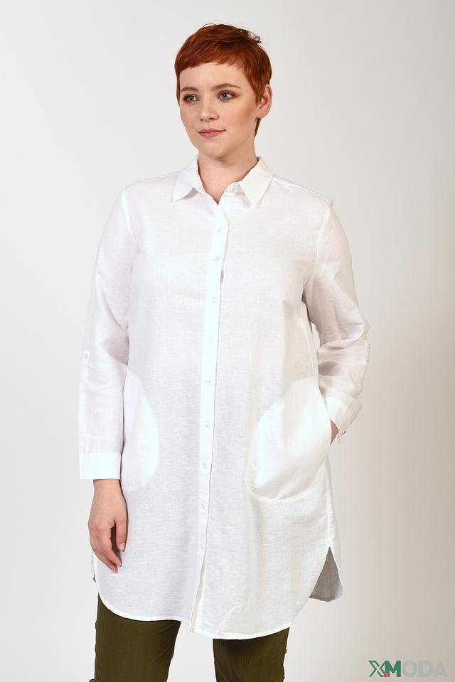 Белая рубашка оверсайз от Frapp выполнена из натурального льна с хлопком. Модель имеет длинный рукав, классический воротник и застежку на пуговицы. Состав: лен 55%, хлопок 45%