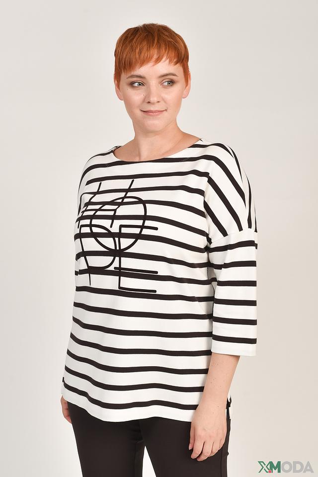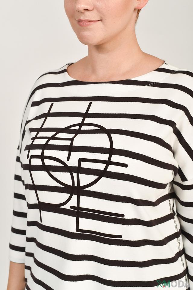 Лонгслив Frapp бело-чёрный в полоску с графическим принтом