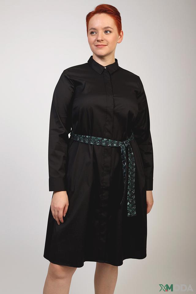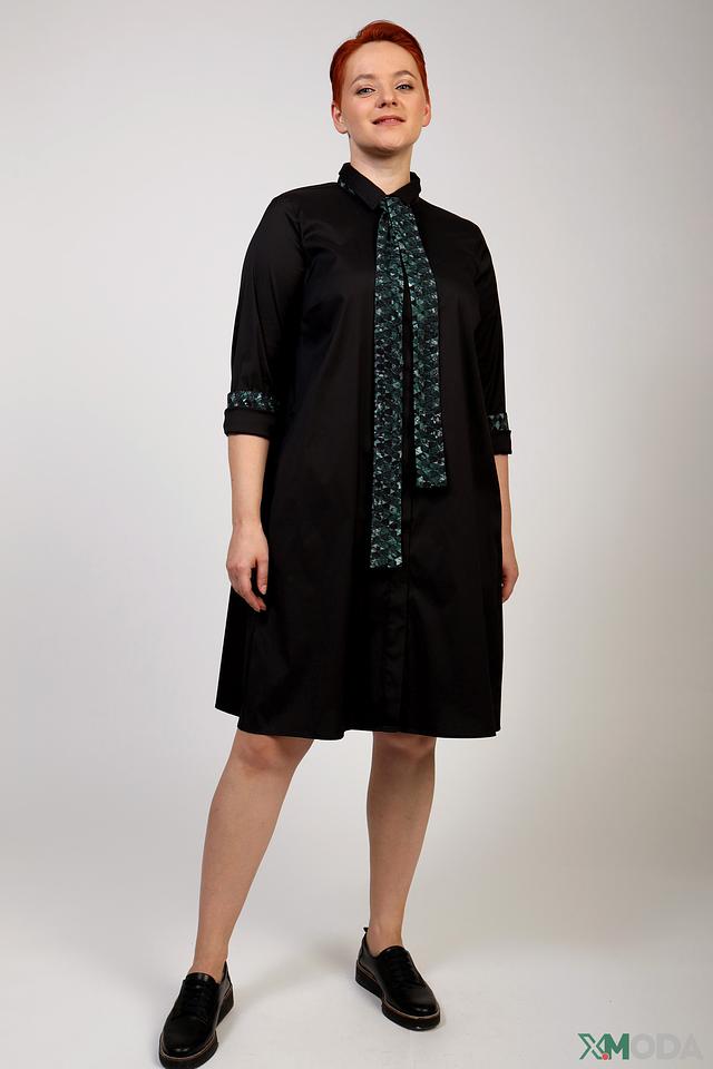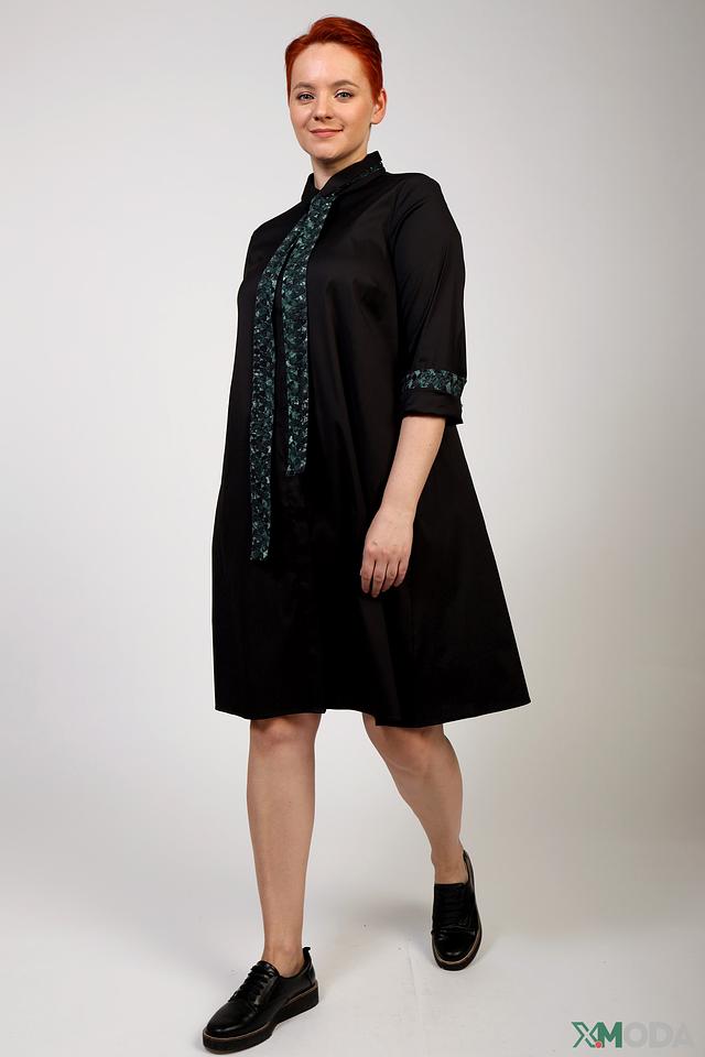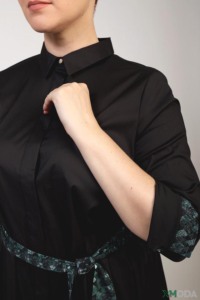 Платье рубашка Frapp чёрное с зелёным