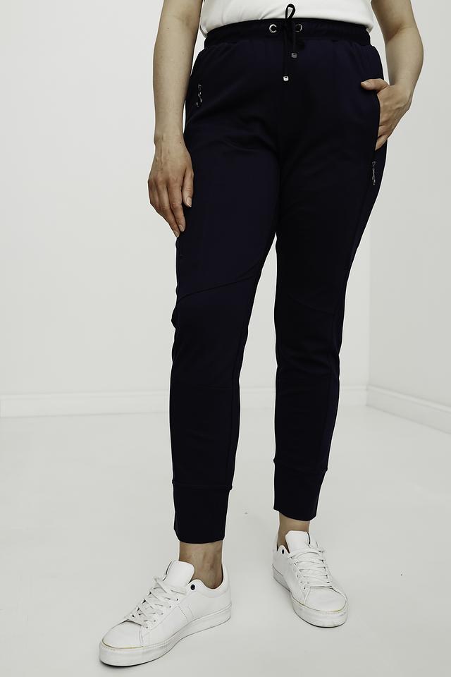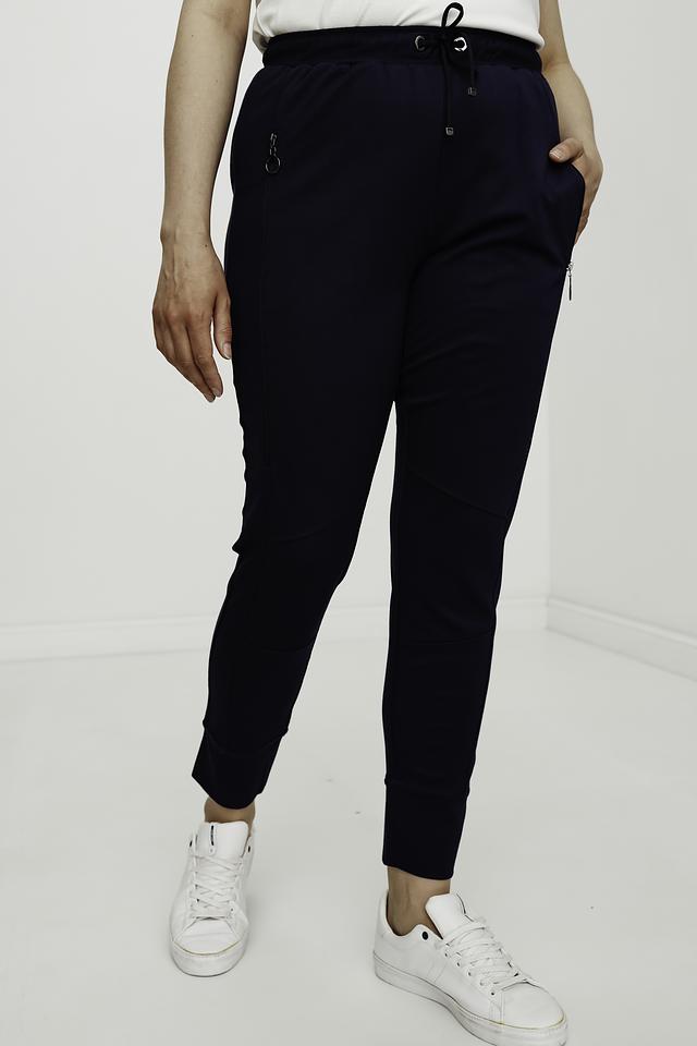Женские брюки Frapp темно-синего цвета – это удобная и стильная модель для повседневной носки. Брюки имеют зауженный к низу силуэт и эластичный пояс с кулиской, что обеспечивает комфортную посадку. Изготовлены из мягкой вискозы с добавлением полиамида и эластана. Состав: вискоза 70%, полиамид 25%, эластан 5%