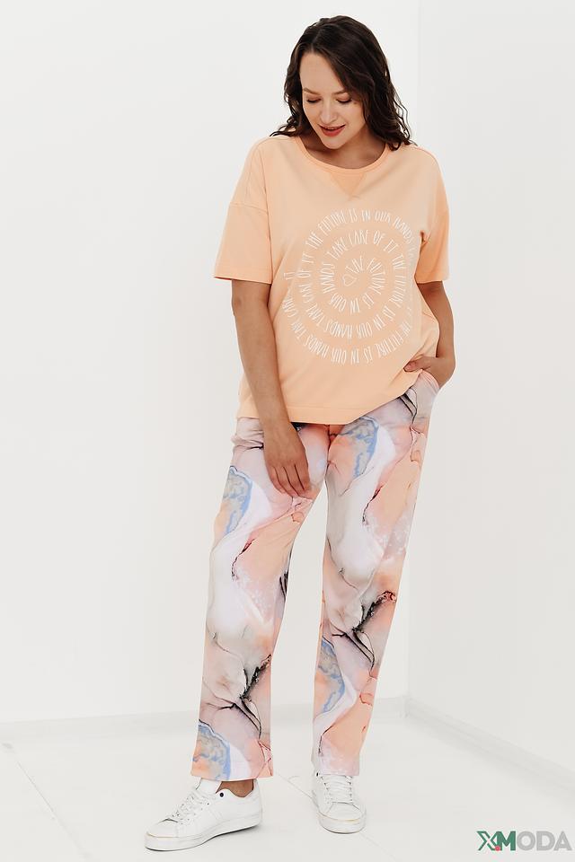 Женская футболка Frapp персикового цвета с оригинальным круглым принтом. Модель оверсайз из мягкого хлопка с добавлением эластана обеспечит комфорт и свободу движений. Состав: хлопок 95%, эластан 5%