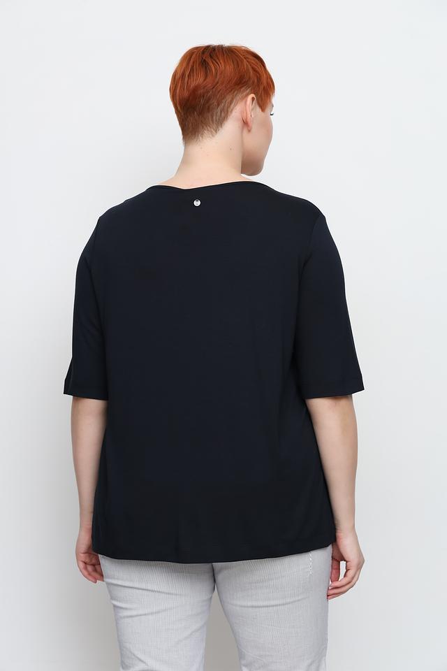 Футболка имеет свободный крой, который обеспечивает комфорт при носке. Состав ткани – 94% вискоза и 6% эластан, что делает её приятной к телу и хорошо драпирующейся. Эта модель идеально подойдет для создания как повседневных, так и более нарядных образов.