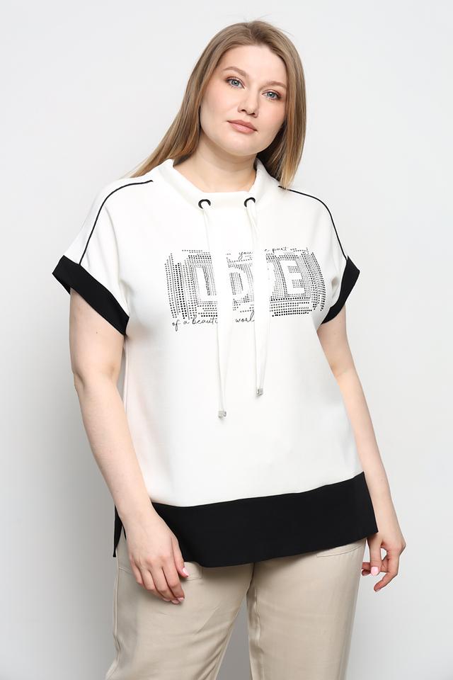 Женская толстовка Frapp белого цвета с оригинальным декором в виде надписи "LIFE", выполненной из страз. Модель с коротким рукавом и капюшоном, дополненным шнурками. Стильное и комфортное решение для повседневного образа. Состав: вискоза 49%, полиэстер 43%, эластан 8%