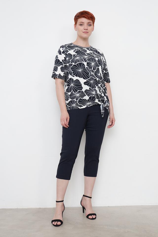 Блуза Frapp чёрно-белого цвета с оригинальным цветочным принтом и завязками по бокам. Изготовлена из мягкой и приятной к телу вискозы с добавлением эластана, обеспечивающего комфортную посадку. Состав: вискоза 90%, эластан 10%