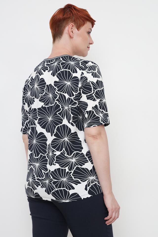 Эта стильная блуза от Frapp станет отличным дополнением к вашему гардеробу. Она выполнена в чёрно-белой цветовой гамме и украшена ярким цветочным принтом, который придаёт ей особый шарм.