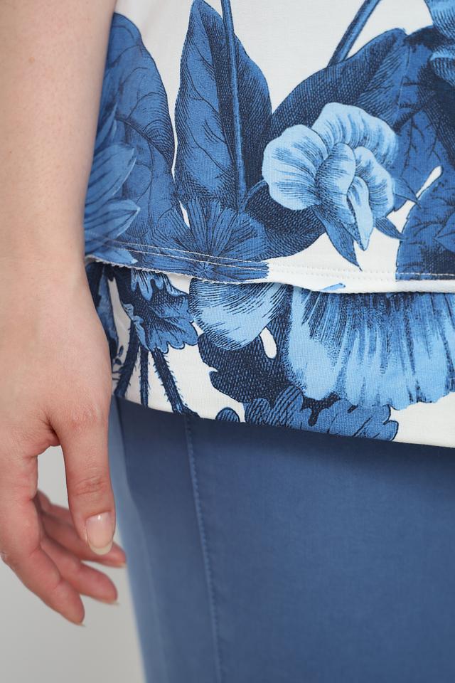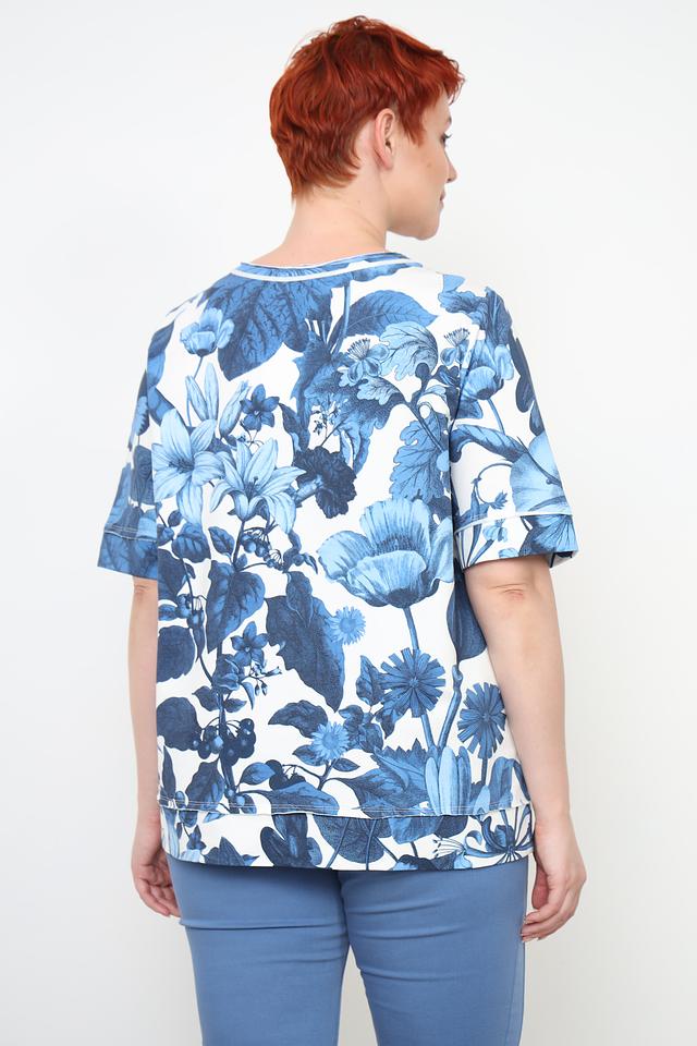 Женский пуловер Frapp синего цвета с ярким цветочным принтом станет стильным дополнением к вашему гардеробу. Модель выполнена из мягкого хлопка с добавлением эластана, обеспечивающего комфорт и свободу движений. Состав: хлопок 95%, эластан 5%