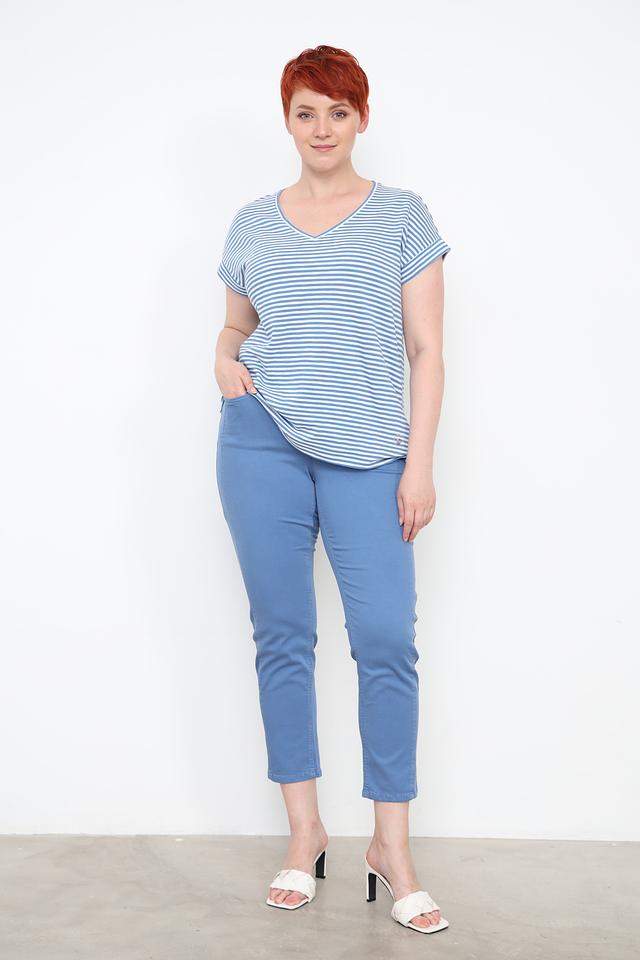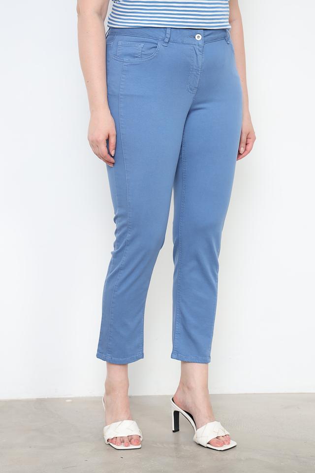 Женские брюки Frapp голубого цвета – это стильное и комфортное решение для повседневного гардероба. Модель выполнена из мягкой ткани с добавлением эластана, обеспечивающего удобную посадку. Прямой крой и классический пояс делают эти брюки универсальными. Состав: хлопок 55%, лиоцел 43%, эластан 2%
