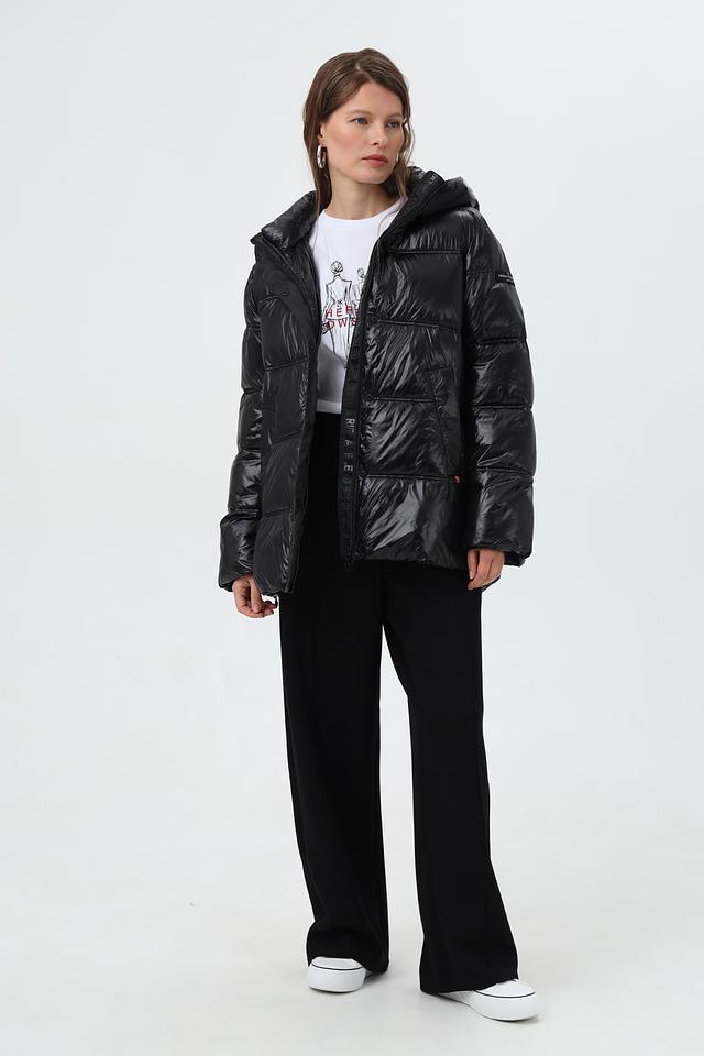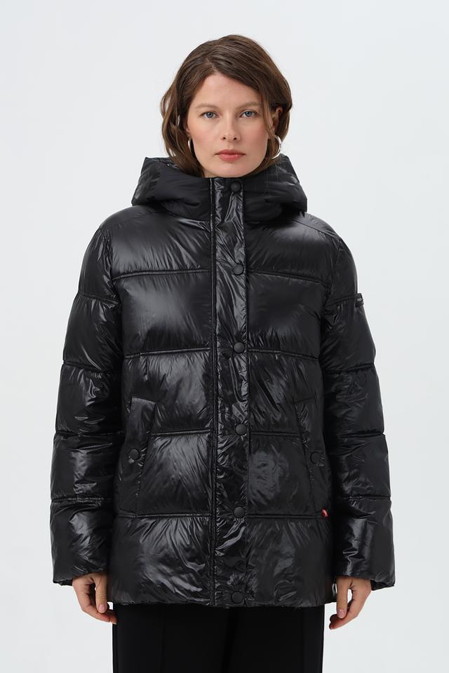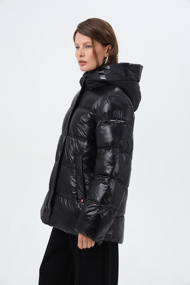 Черная стеганая куртка Frieda and Freddies из 100% полиамида – отличный выбор для создания стильного и комфортного образа. Модель с капюшоном и застежкой на кнопки. Состав: полиамид 100%