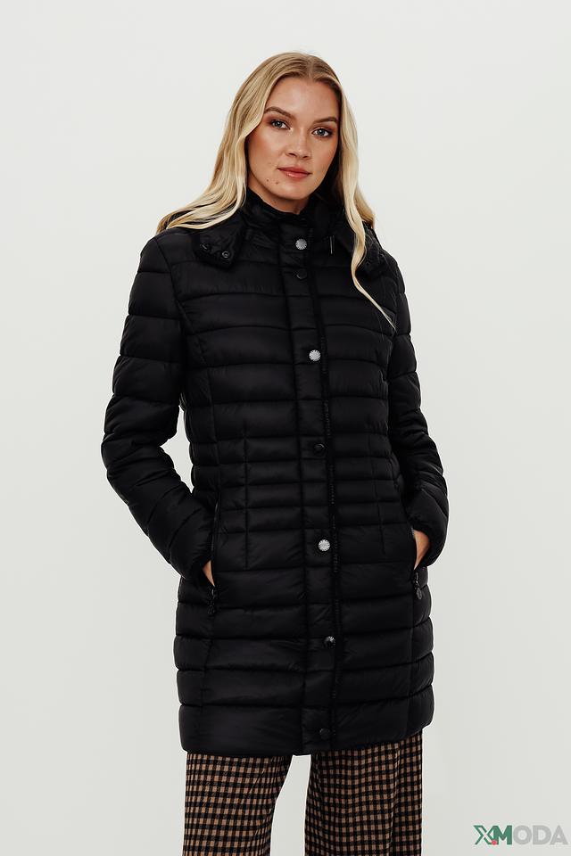 Пальто имеет стеганую фактуру, которая придает ему современный вид. Капюшон обеспечивает дополнительную защиту от непогоды, а застежка на кнопки позволяет быстро и удобно застегнуть пальто.