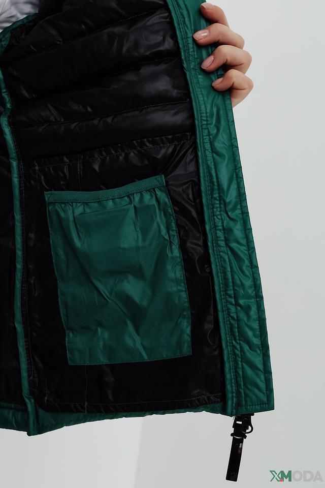 Куртка имеет высокий воротник-стойку и застегивается на молнию. Рукава куртки снабжены эластичными манжетами, которые плотно прилегают к запястью, защищая от холода. Боковые карманы на молнии позволяют безопасно хранить необходимые мелочи.