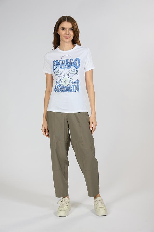 Особенностью данной модели является яркий и стильный принт "Indigo Records" в голубых тонах, который придает футболке индивидуальность и современный вид. Прямой крой футболки обеспечивает свободу движений и подходит для различных типов фигур.