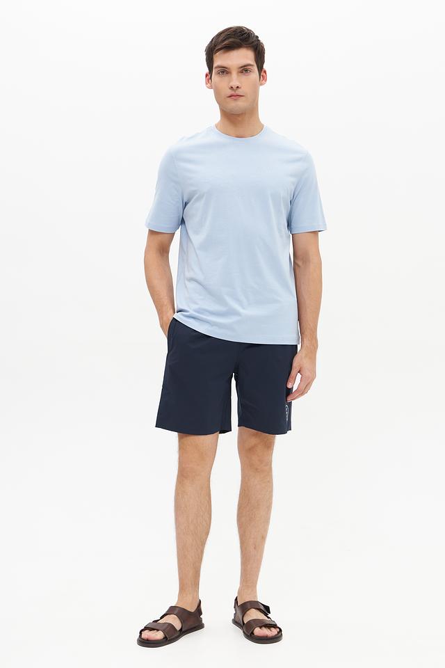 Футболка имеет круглый вырез горловины и короткие рукава, что обеспечивает свободу движений.