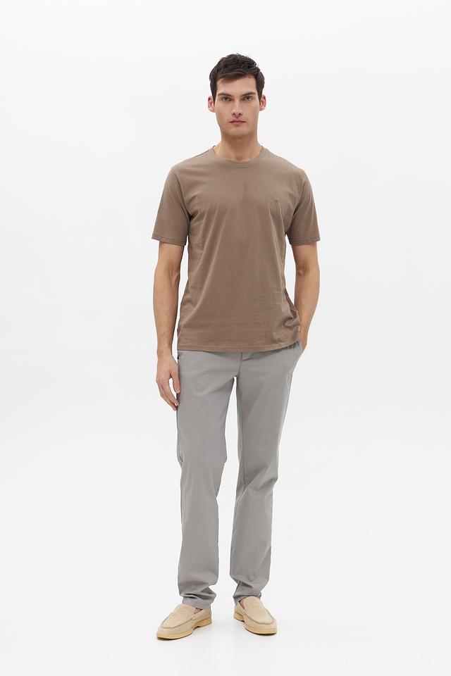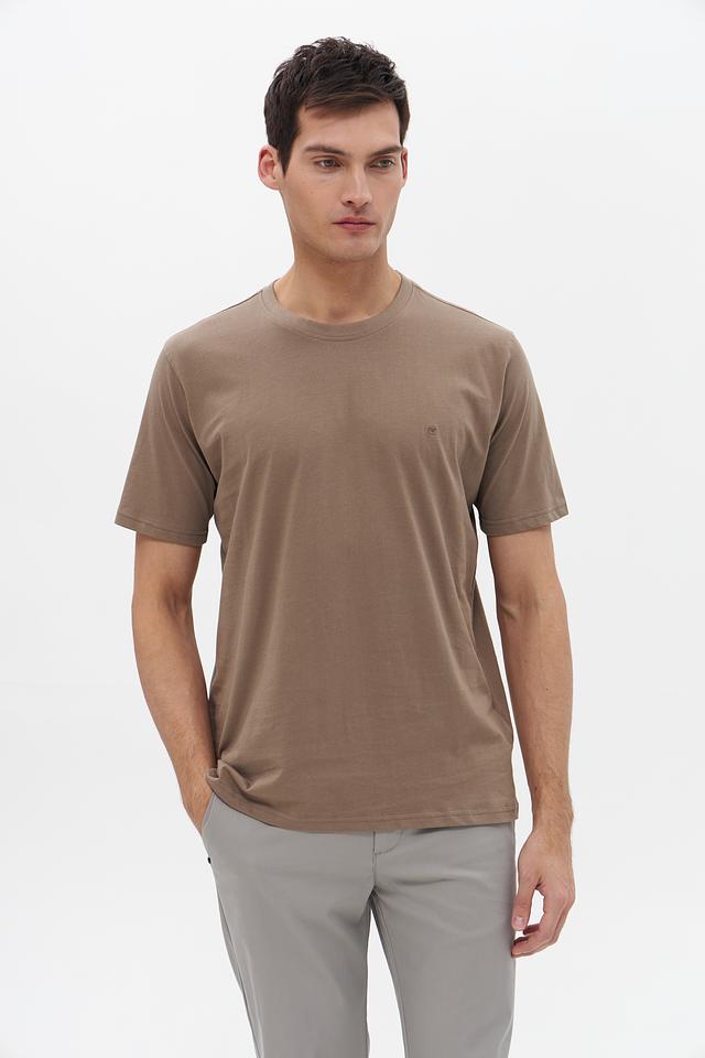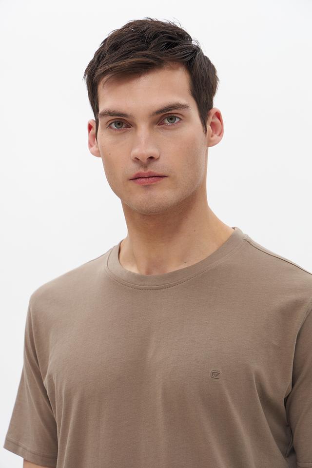 Футболка имеет короткий рукав и круглый вырез горловины. Отсутствие ярких деталей и принтов делает ее универсальной и подходящей для создания различных образов. Небольшой логотип бренда, расположенный на груди, добавляет сдержанности и стиля.