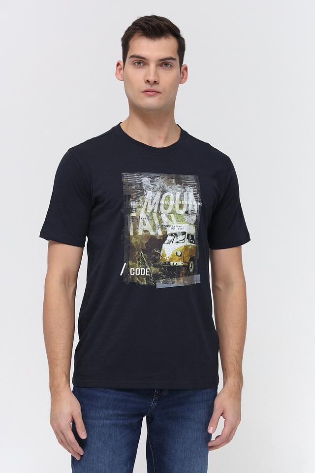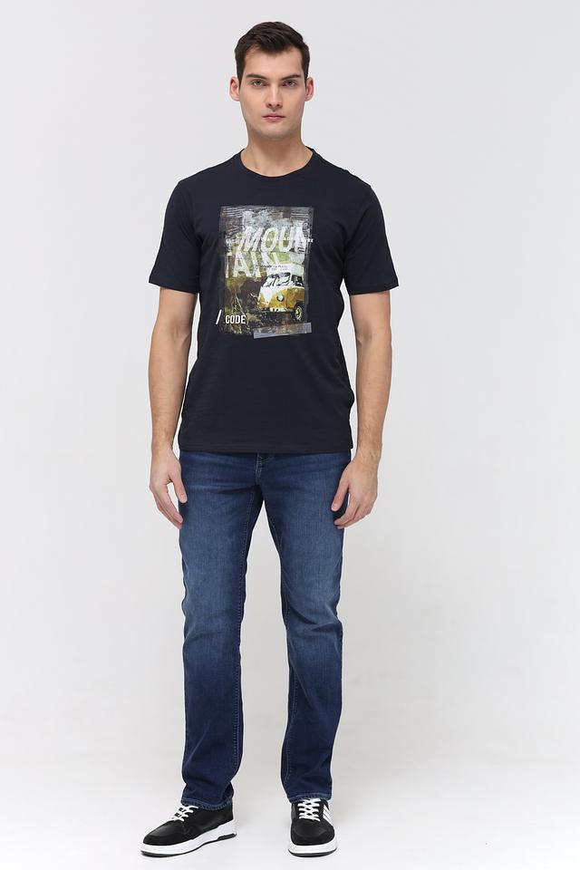 Чёрная футболка Casa Moda с оригинальным принтом на лицевой стороне. Изготовлена из 100% хлопка, обеспечивающего комфорт и воздухопроницаемость. Стильный и универсальный вариант для повседневного образа. Состав: хлопок 100%