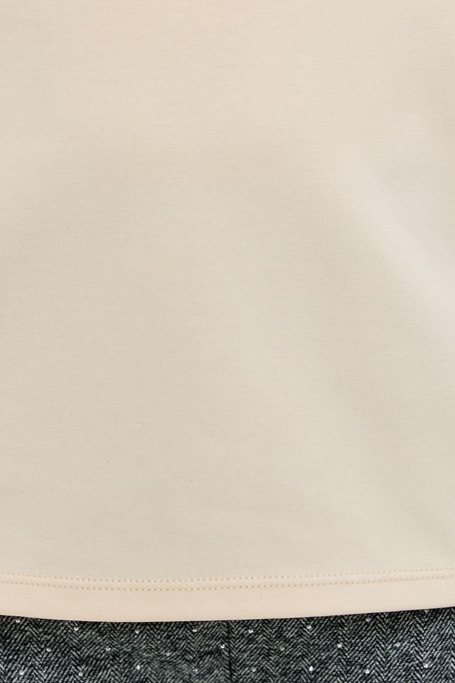 Модель имеет короткий рукав и круглый вырез горловины, отделанный тонкой полоской в тон изделия. Футболка выполнена из высококачественного хлопка с небольшим добавлением эластана, что обеспечивает комфорт при носке и сохранение формы после стирок.