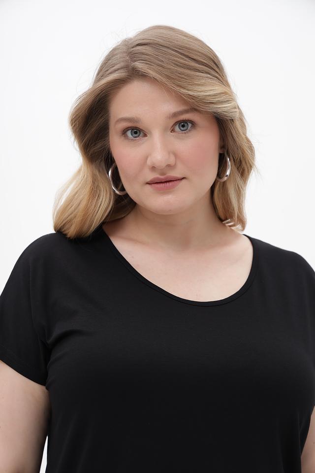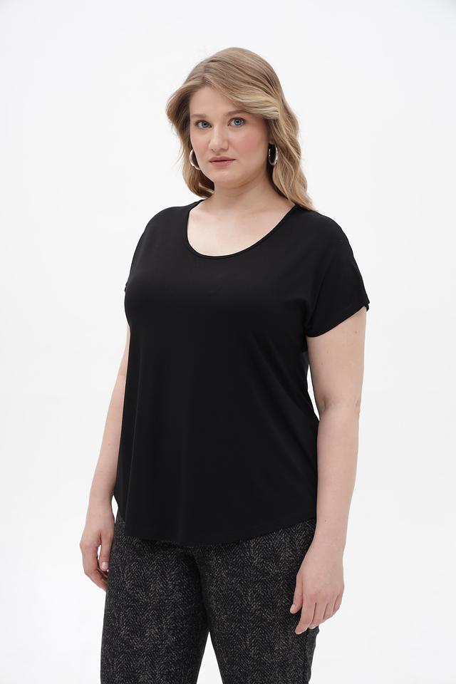 Чёрная футболка от бренда Doris Streich – это идеальный выбор для создания повседневного и комфортного образа.