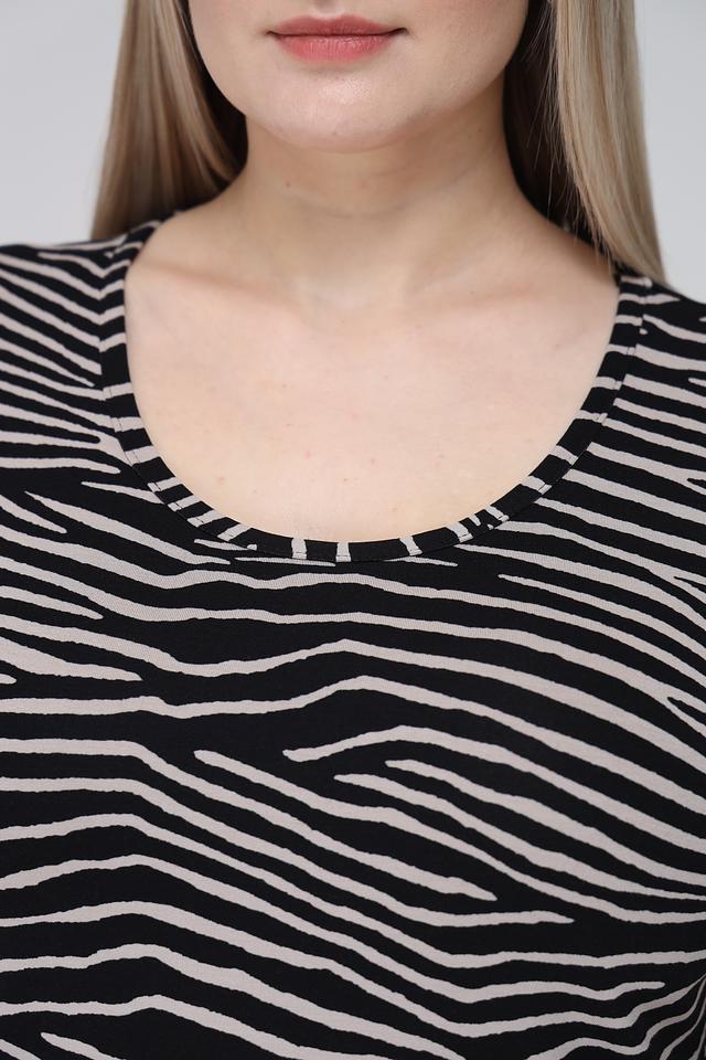Женская футболка Doris Streich чёрно-белого цвета с оригинальным полосатым принтом. Модель выполнена из мягкой вискозы с добавлением эластана, обеспечивающего комфортную посадку по фигуре. Состав: вискоза 92%, эластан 8%