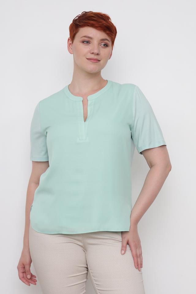 Мятная блуза Frank Walder из вискозы с короткими рукавами и V-образным вырезом. Эта модель отличается лёгким кроем и приятной к телу тканью, идеально подходит для создания комфортных и стильных образов. Состав: вискоза 93%, эластан 7%
