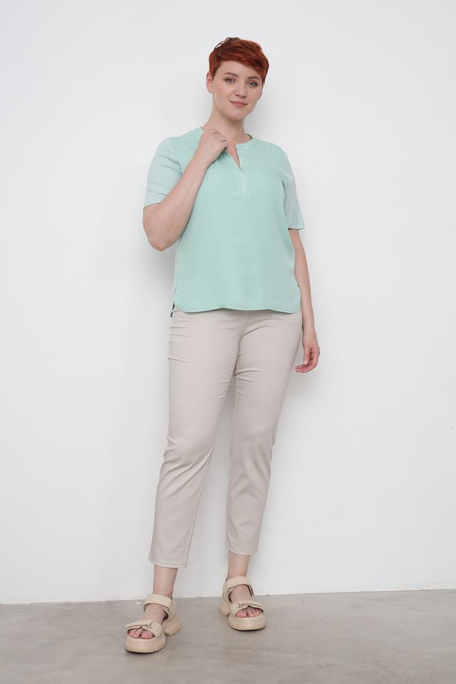 Благодаря своему лаконичному дизайну и нежному мятному оттенку, эта блуза станет отличным дополнением к вашему гардеробу. Она прекрасно сочетается с брюками, юбками и джинсами, позволяя создавать разнообразные образы для работы, отдыха или особых случаев.