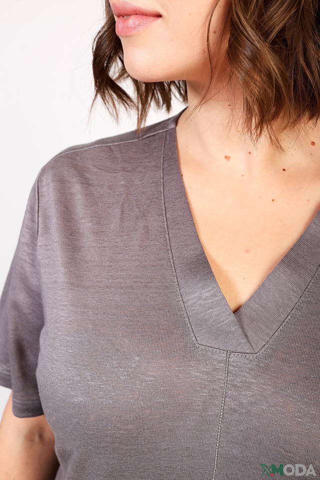 Женская футболка Frank Walder серого цвета с V-образным вырезом и короткими рукавами. Изготовлена из 100% льна, что обеспечивает комфорт и воздухопроницаемость в жаркую погоду. Стильный и лаконичный дизайн. Состав: лен 100%