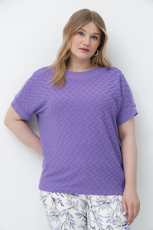 Футболка изготовлена из мягкой и приятной к телу вискозы с добавлением полиэстера и эластана, благодаря чему она хорошо держит форму и не мнется. Текстурная поверхность придает изделию оригинальность и изысканность.