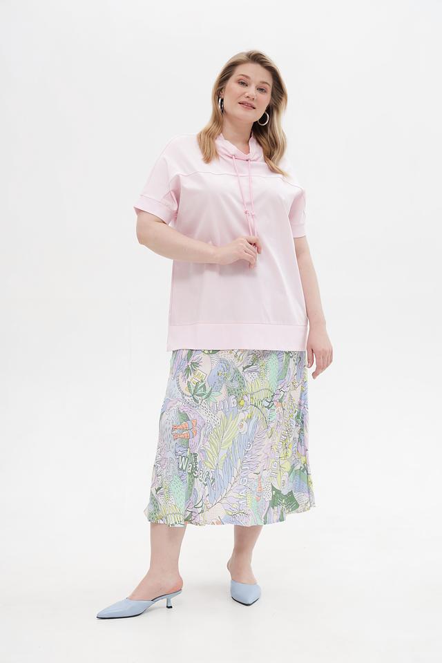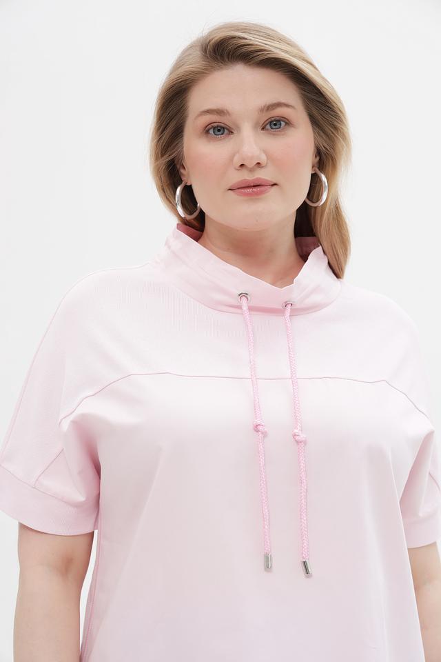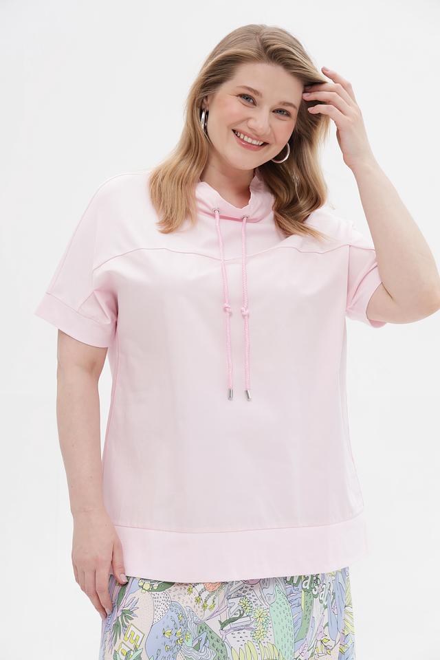 Женская футболка Frapp нежно-розового цвета с короткими рукавами и капюшоном на завязках. Изготовлена из мягкого хлопка с добавлением эластана для комфорта и свободы движений. Состав: хлопок 92%, эластан 8%