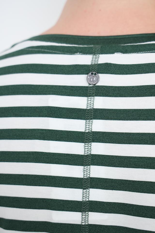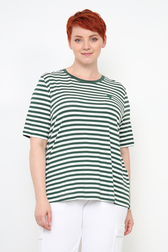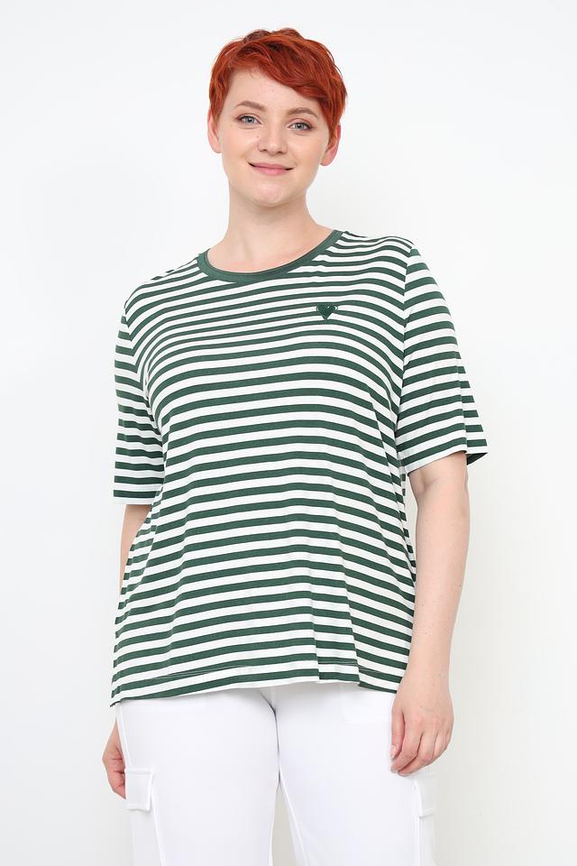 Женская футболка Frapp выполнена в классическую зелёно-белую полоску. Модель из мягкой вискозы с добавлением эластана обеспечит комфорт и свободу движений. Декорирована вышивкой в виде сердца. Состав: вискоза 90%, эластан 10%