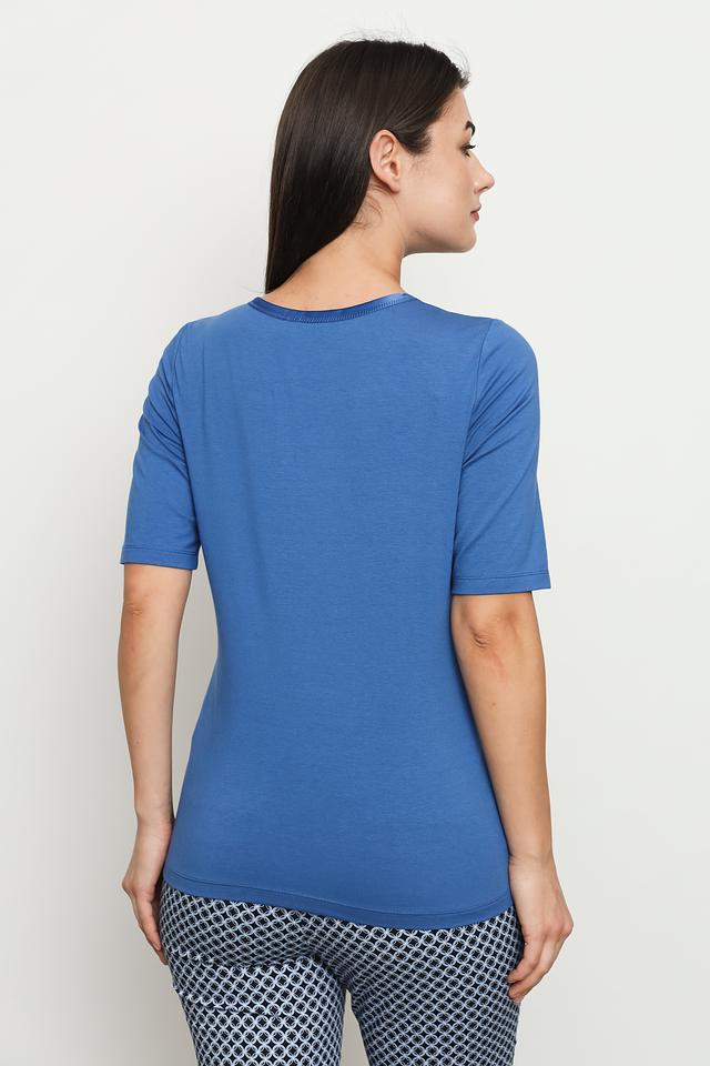 Синяя футболка Gerry Weber из мягкого трикотажа станет отличным дополнением к вашему гардеробу. Классический крой и удобный крой обеспечивают комфорт в течение дня. Состав ткани включает хлопок и модал. Состав: хлопок 47%, модал 47%, эластан 6%