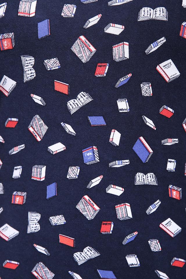 Женский пуловер Gerry Weber EDITION темно-синего цвета с оригинальным принтом в виде книг. Модель выполнена из мягкого хлопка с добавлением полиамида и эластана для комфорта и сохранения формы. Состав: хлопок 75%, полиамид 22%, эластан 3%