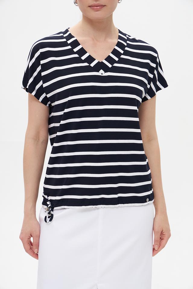 Стильная футболка Gollehaug синего цвета с классическим полосатым принтом. Изготовлена из мягкой вискозы с добавлением эластана для комфорта и хорошей посадки. Состав: вискоза 95%, эластан 5%