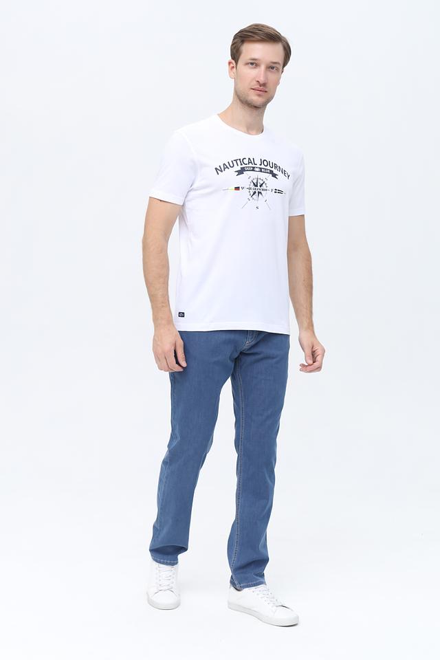 На передней части футболки расположен яркий принт "Nautical Journey" с изображением компаса и морской тематики. Дизайн выполнен в сдержанной цветовой гамме, что делает футболку универсальной и подходящей для различных стилей.