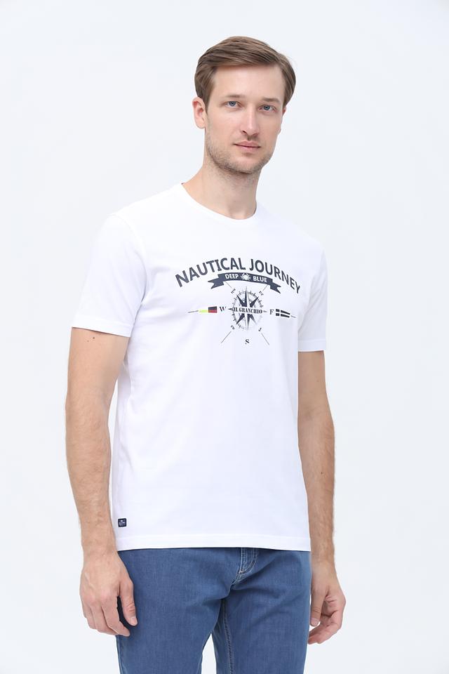 Белая футболка Granchio с принтом "Nautical Journey" — это стильная и комфортная модель из 100% хлопка. Футболка имеет классический крой и короткий рукав, идеально подходит для повседневной носки. Состав: хлопок 100%