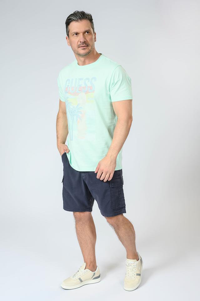 Эта футболка от Guess станет отличным дополнением к вашему гардеробу. Она выполнена в приятном голубом цвете и украшена эффектным принтом с изображением пальм и надписью Guess.