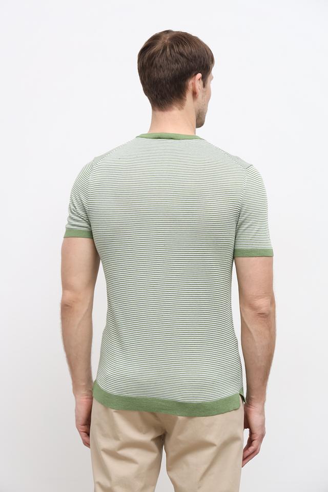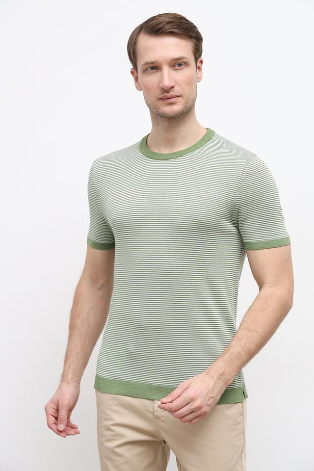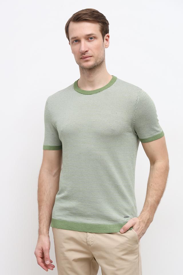 Мужская футболка Joop! зелёного цвета с классическим полосатым рисунком. Изготовлена из сочетания льна, полиэстера и хлопка, обеспечивая комфорт и воздухопроницаемость. Идеальный выбор для создания стильного повседневного образа. Состав: лен 45%, полиэстер 39%, хлопок 16%
