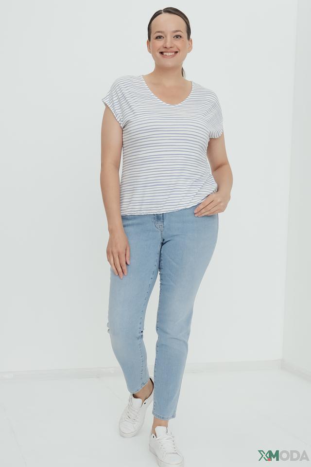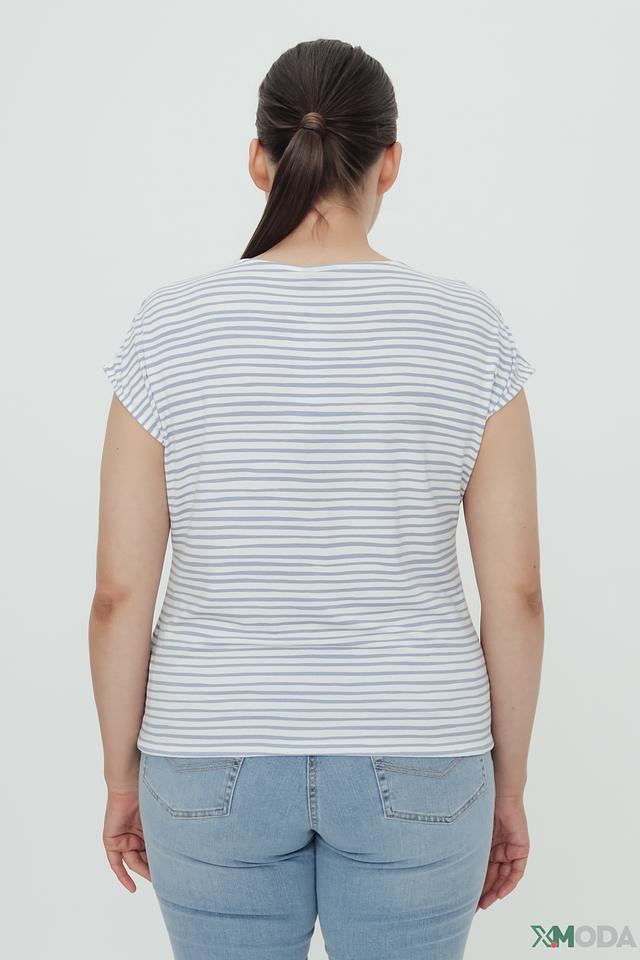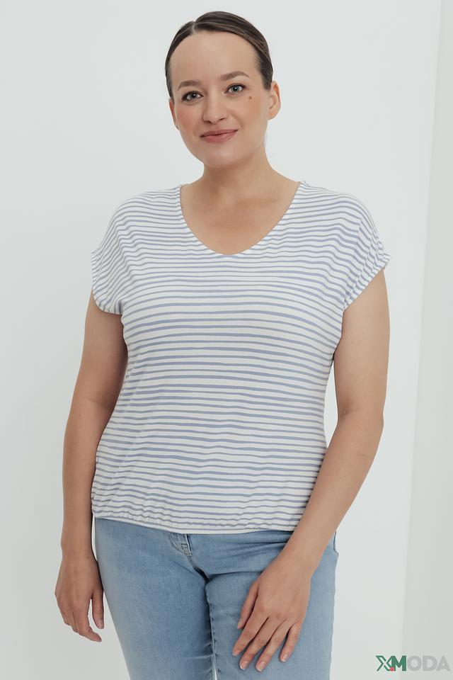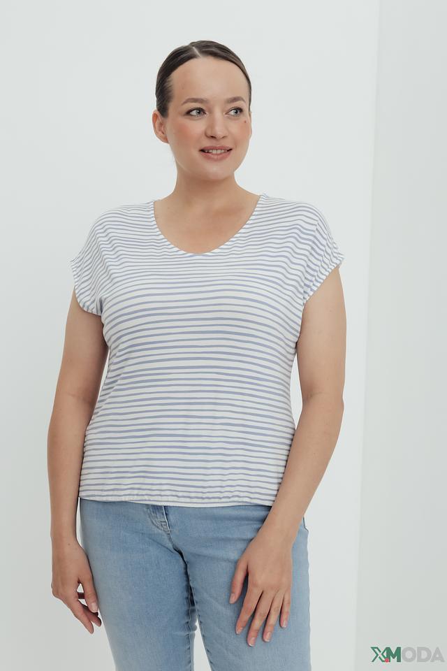 Женская футболка Lebek голубого и белого цвета в классическую полоску. Модель выполнена из мягкой вискозы с добавлением эластана, обеспечивающего комфортную посадку. Футболка идеально подойдет для создания повседневных образов. Состав: вискоза 95%, эластан 5%