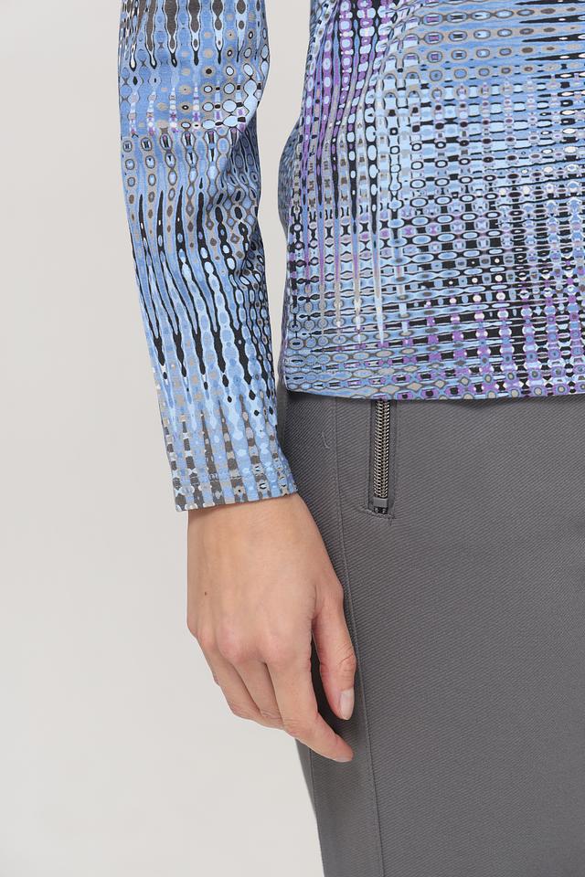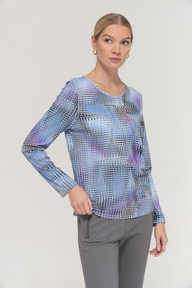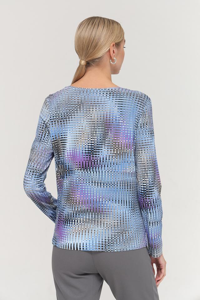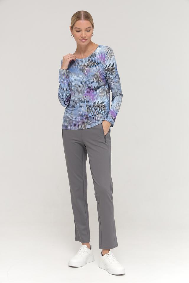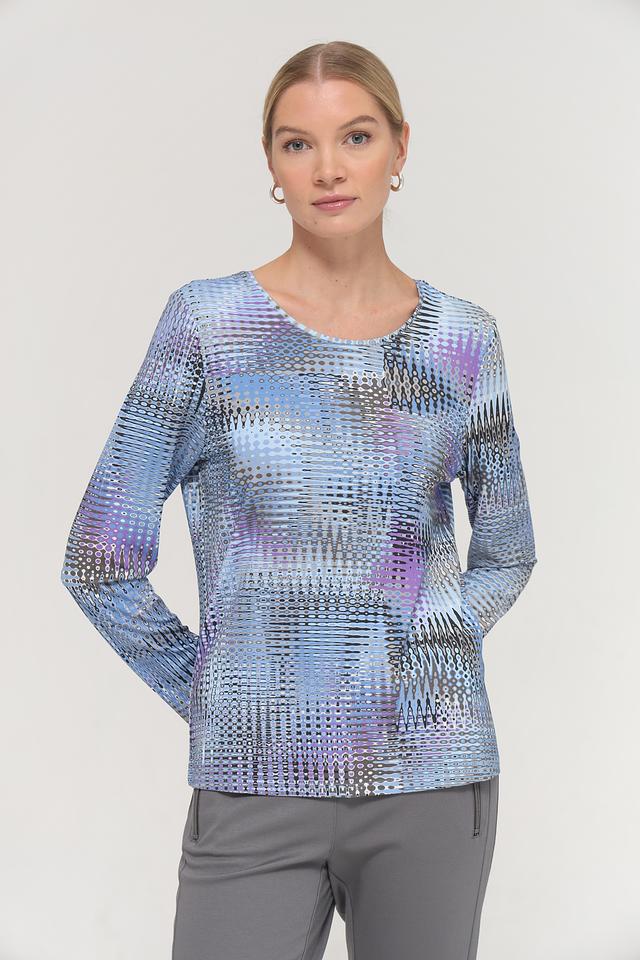 Женская футболка Barbara Lebek голубого цвета с оригинальным абстрактным принтом. Изготовлена из мягкой вискозы с добавлением эластана для комфорта и хорошей посадки. Идеальный выбор для создания стильного повседневного образа. Состав: вискоза 95%, эластан 5%