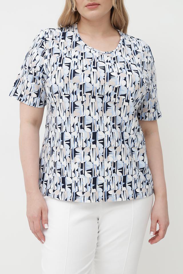 Женская футболка Lebek голубого цвета с оригинальным геометрическим принтом. Модель выполнена из мягкого хлопка с добавлением модала для комфорта и приятных тактильных ощущений. Состав: хлопок 92%, модал 8%