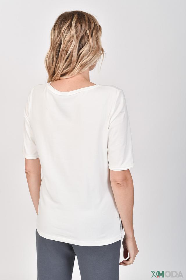 Модель имеет прямой крой, короткие рукава и округлый вырез горловины. Футболка изготовлена из высококачественного хлопка (92%) с добавлением эластана (8%), что обеспечивает комфорт при носке, хорошую посадку по фигуре и устойчивость к деформации.