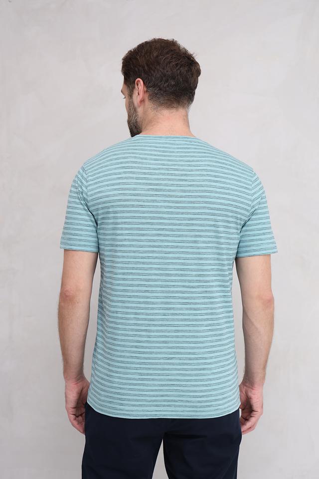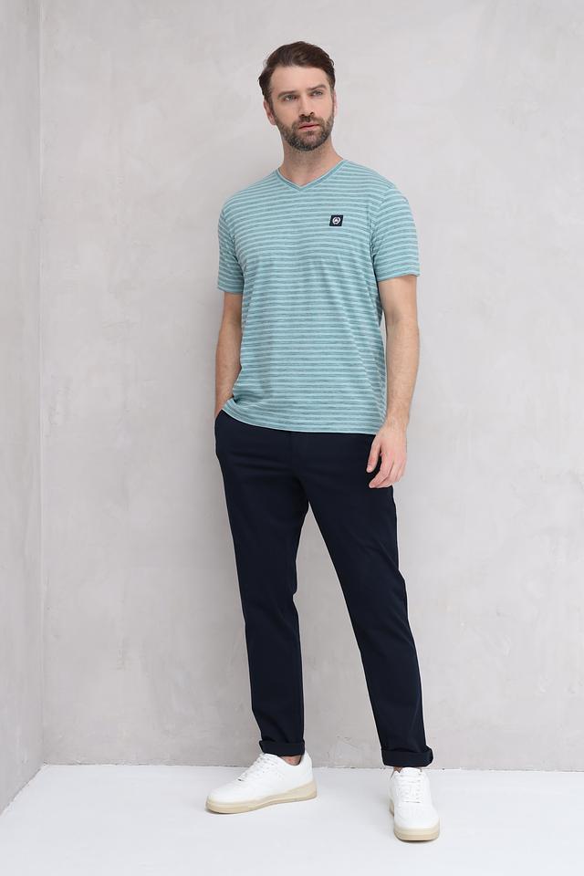 Мужская футболка Lerros бирюзового цвета с V-образным вырезом и полосатым рисунком. Изготовлена из 100% хлопка, обеспечивающего комфорт и воздухопроницаемость. Стильный и универсальный вариант для повседневного образа. Состав: хлопок 100%