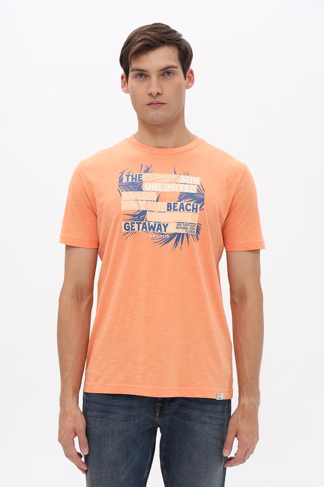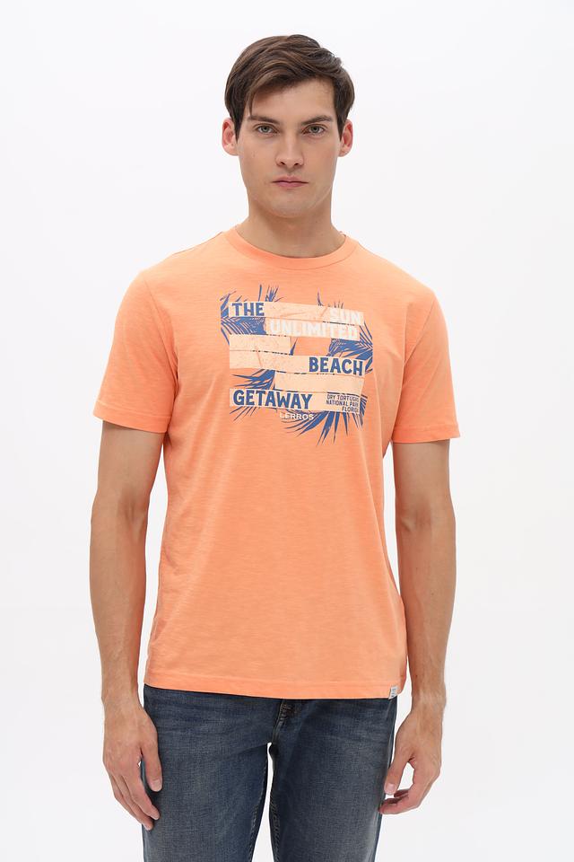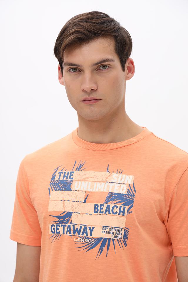 Оранжевая футболка Lerros с ярким принтом в пляжном стиле. Изготовлена из 100% хлопка, обеспечивающего комфорт и воздухопроницаемость. Отличный выбор для повседневного образа. Состав: хлопок 100%