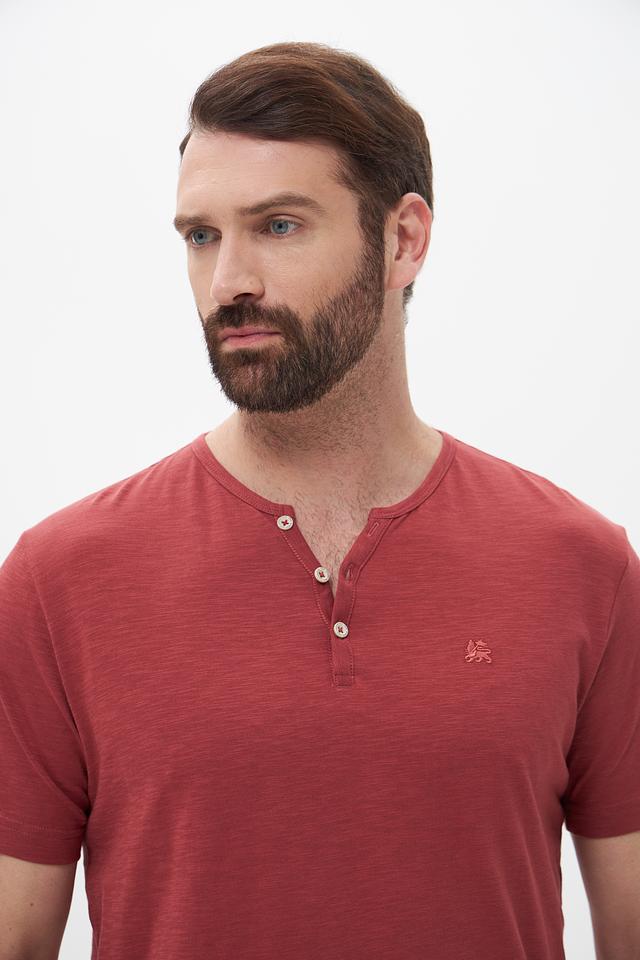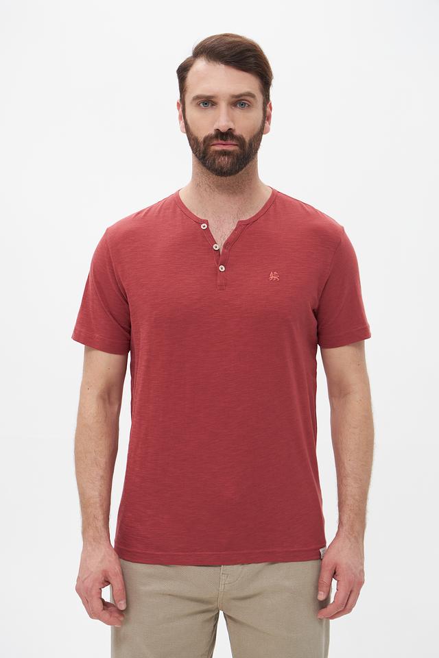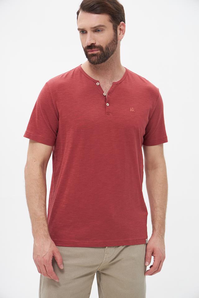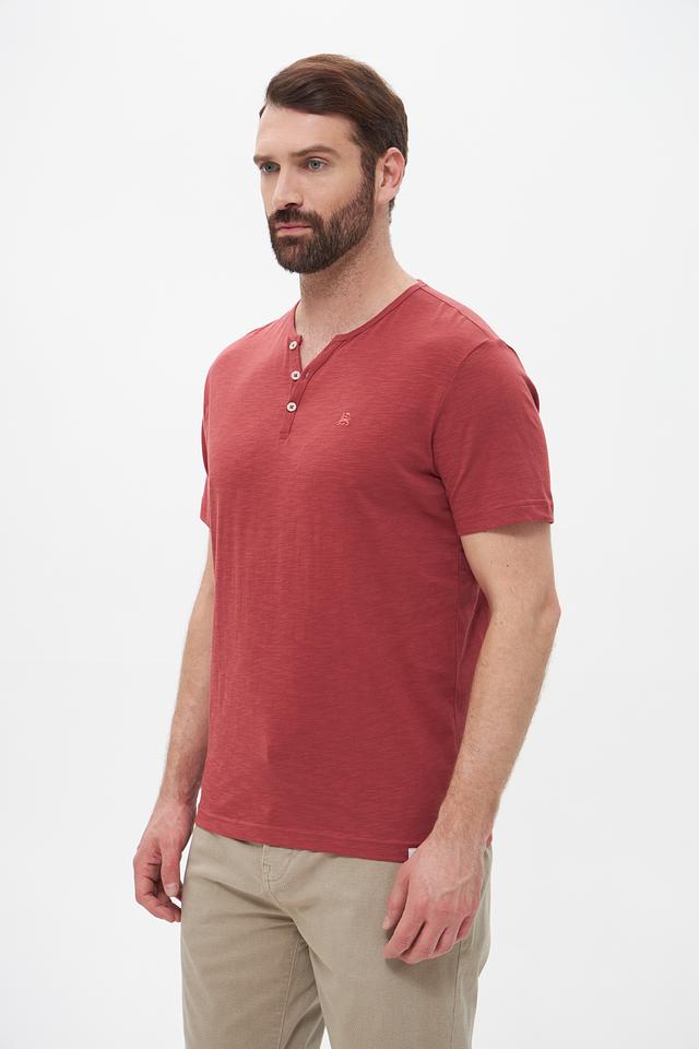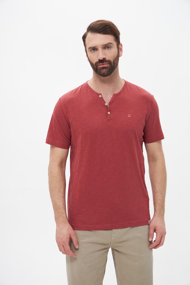Мужская футболка Lerros терракотового цвета с короткий рукавом и планкой на пуговицах. Изготовлена из 100% хлопка, обеспечивающего комфорт и воздухопроницаемость. Отличный выбор для повседневного образа. Состав: хлопок 100%