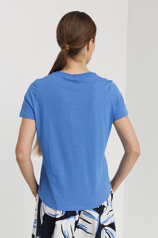 Женская футболка Luisa Cerano голубого цвета – это базовая модель из 100% хлопка, идеально подходящая для создания повседневных образов. Классический крой и лаконичный дизайн делают эту футболку универсальным элементом гардероба. Состав: хлопок 100%