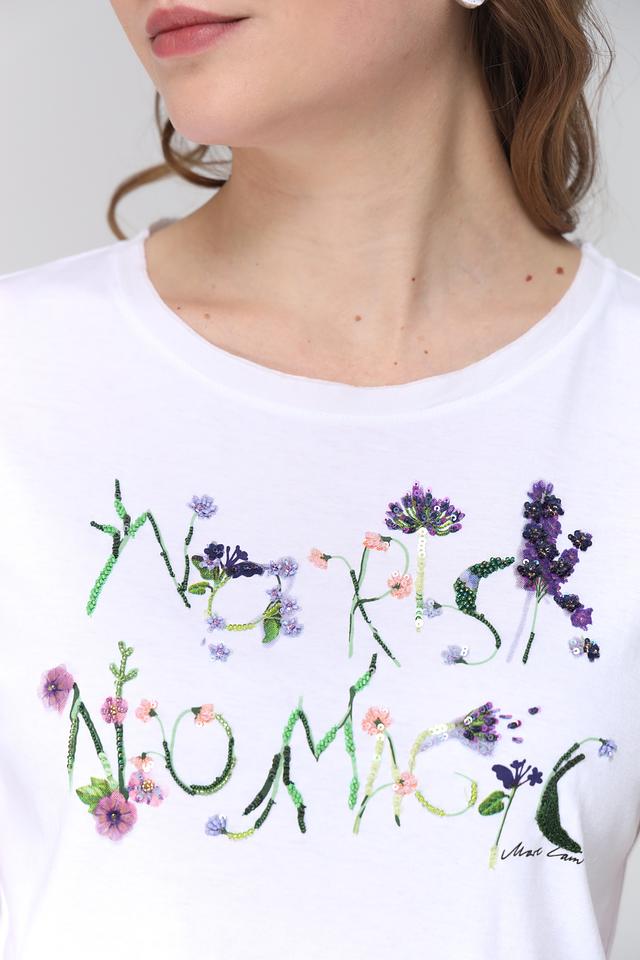 Белая футболка Marc Cain с ярким цветочным принтом добавит легкости и свежести вашему образу. Изготовлена из 100% хлопка, обеспечивая комфорт и воздухопроницаемость. Состав: хлопок 100%