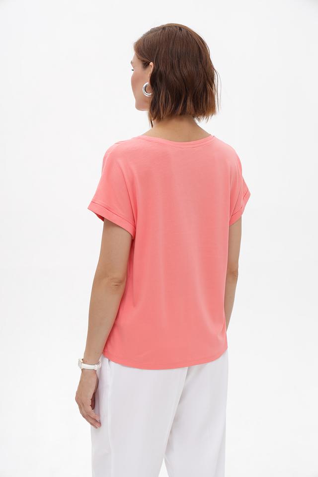 Футболка идеально подойдет для создания повседневных образов в сочетании с брюками, юбками или джинсами. Благодаря своему универсальному дизайну и приятной фактуре, она станет незаменимой вещью в вашем гардеробе. Нежный персиковый оттенок освежит ваш образ и придаст ему легкости.