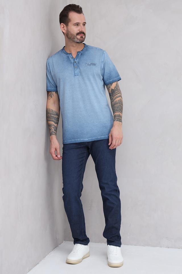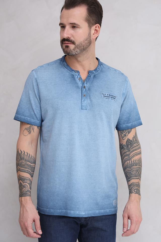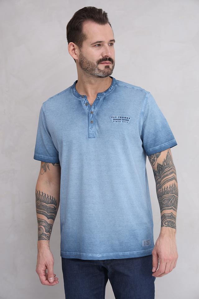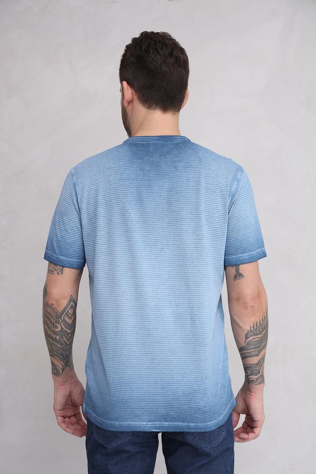 Голубая футболка Lerros с коротким рукавом и воротником-поло, выполненная в полоску с эффектом tie-dye. Изготовлена из 100% хлопка, обеспечивающего комфорт и воздухопроницаемость. Состав: хлопок 100%