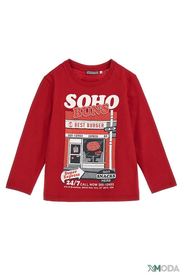 Детская футболка Original Marines ярко-красного цвета с оригинальным принтом "Soho Buns". Изготовлена из 100% хлопка, обеспечивая комфорт и удобство в носке. Стильный и яркий дизайн станет отличным дополнением к гардеробу юного модника. Состав: хлопок 100%
