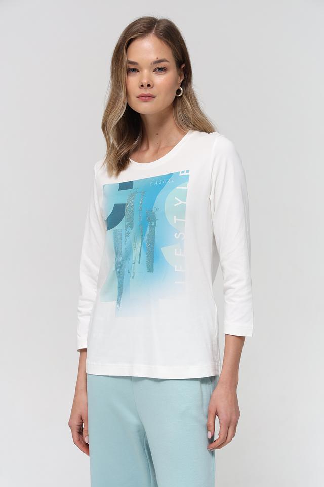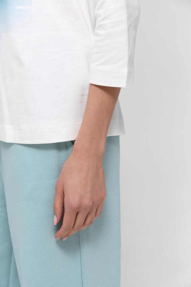 Белая футболка Rabe collection с оригинальным принтом в голубых тонах станет отличным дополнением к вашему образу. Модель выполнена из мягкого хлопка с добавлением эластана, обеспечивающего комфорт при носке. Состав: хлопок 95%, эластан 5%