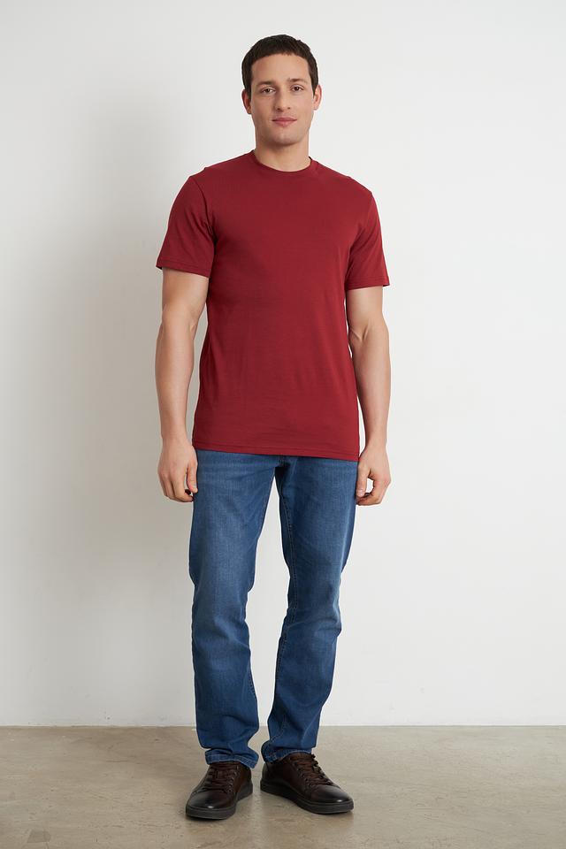 Мужская футболка Ragman бордового цвета – это базовая модель из 100% хлопка, идеально подходящая для повседневной носки. Классический крой и однотонный дизайн делают ее универсальным элементом гардероба. Состав: хлопок 100%